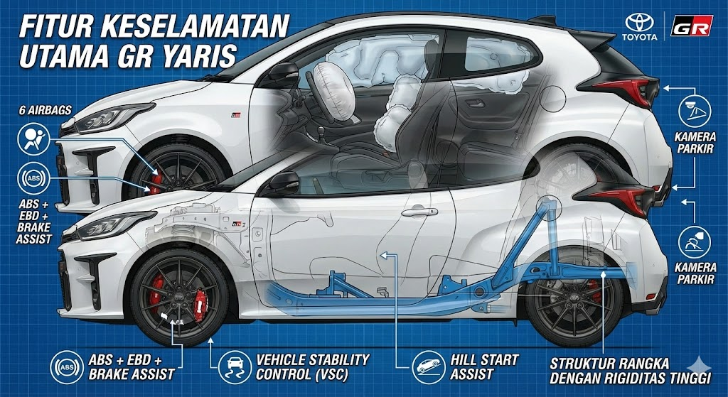 Toyota tetap membekali GR Yaris dengan fitur keselamatan lengkap meski fokus performa.