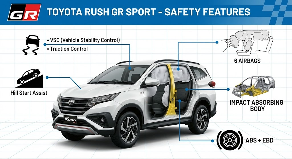 Toyota Rush GR Sport dilengkapi fitur keselamatan penting, seperti:
