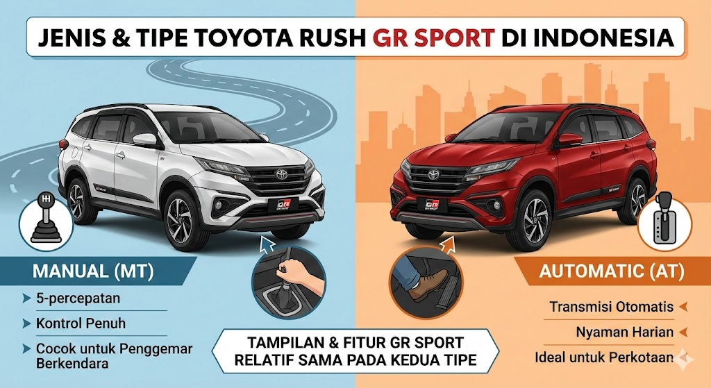 Perbedaan utama terletak pada transmisi, sementara tampilan dan fitur GR Sport relatif serupa.