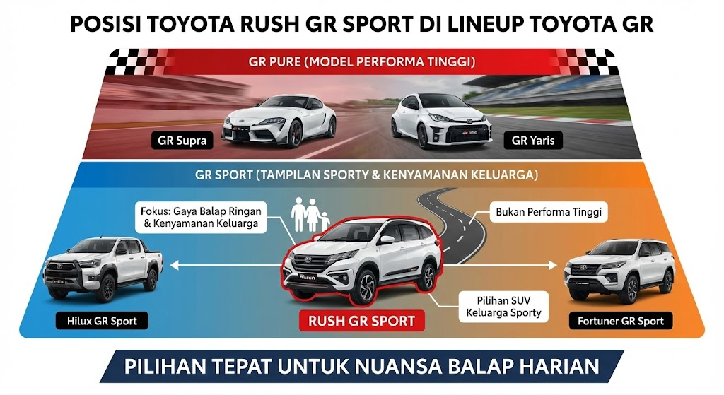 Rush GR Sport menjadi pilihan tepat bagi konsumen yang ingin SUV keluarga dengan nuansa balap ringan.